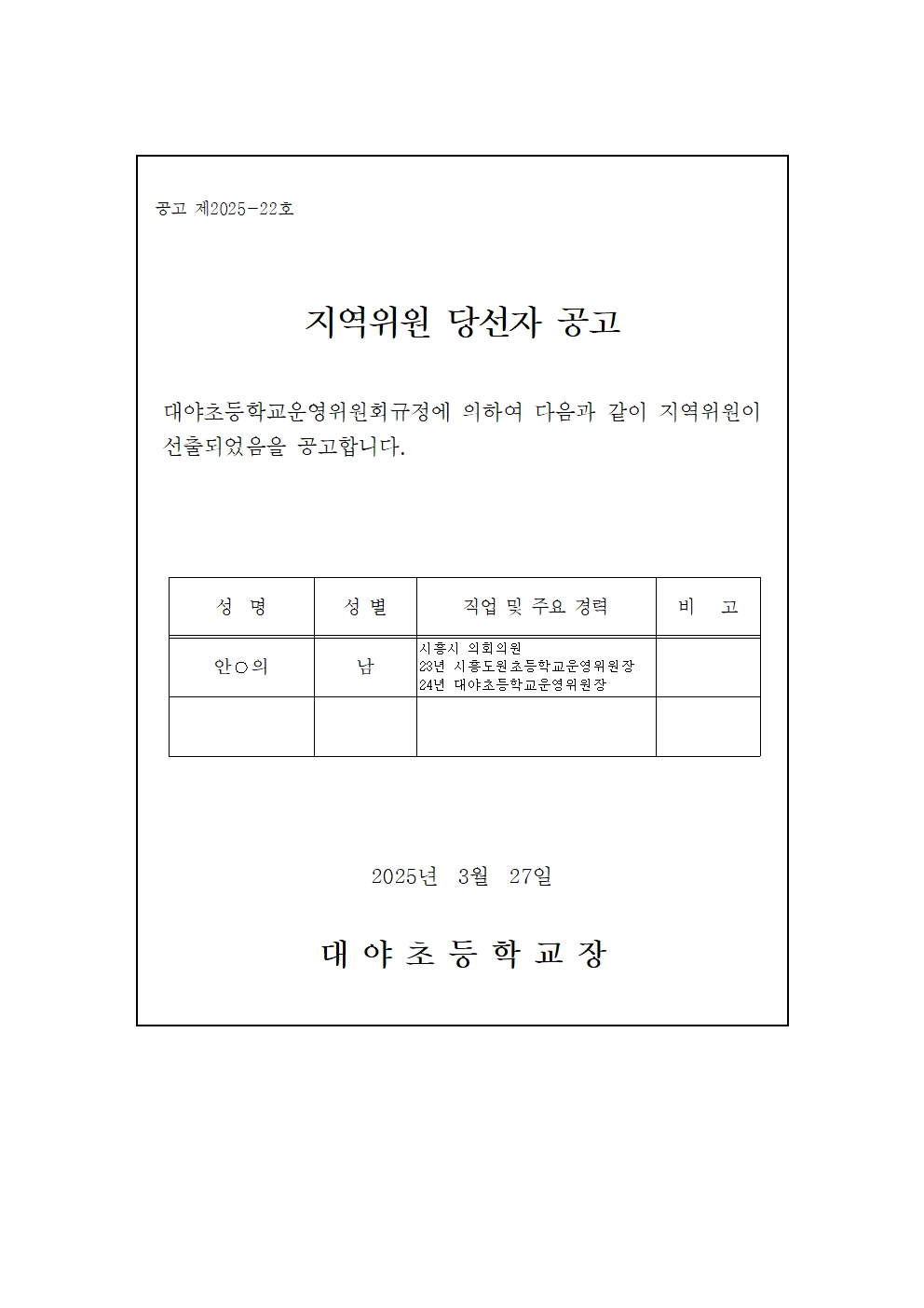 [ÀϹÝ] 2025Çг⵵ Á¦30±â ´ë¾ßÃʵîÇб³¿î¿µÀ§¿øÈ¸ Áö¿ªÀ§¿ø ´ç¼±°ø°í