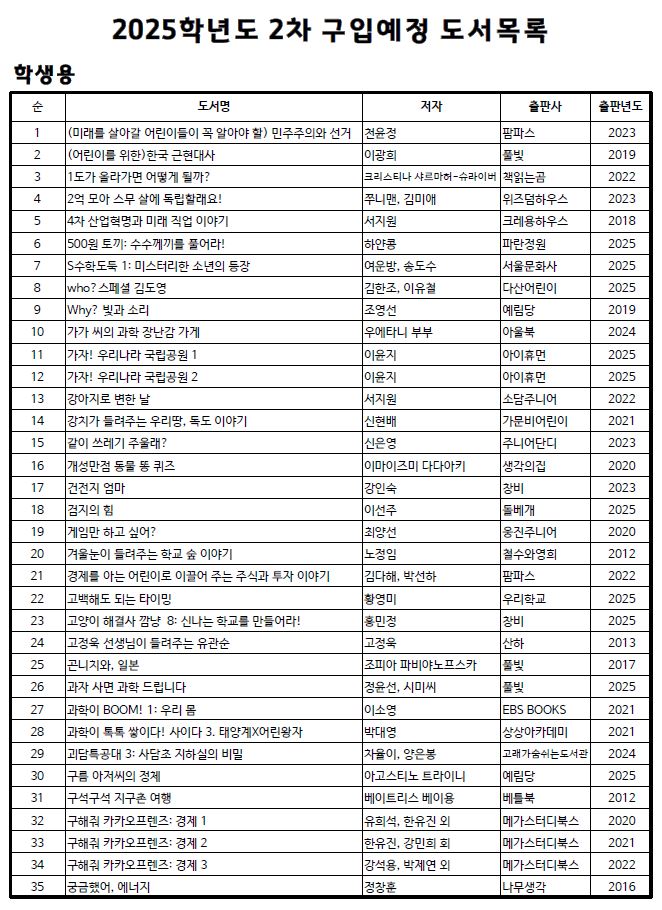 ±¸ÀÔµµ¼¸ñ·ÏÀº Çб³µµ¼°ü¿î¿µÀ§¿øÈ¸ ÇùÀǸ¦ °ÅÃÄ ÃÖÁ¾ ¼±Á¤ÇÏ¿© ±¸ÀԵ˴ϴÙ.