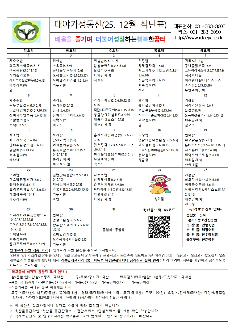 [ÀϹÝ] 12¿ù ½Ä´ÜÇ¥ ¹× ¾È³»¹®