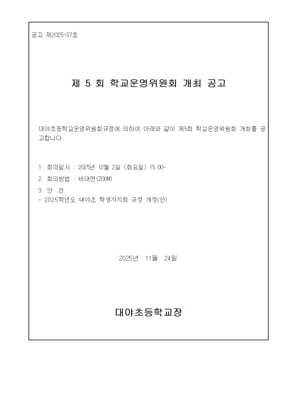 [ÀϹÝ] 2025Çг⵵ Á¦5ȸ Çб³¿î¿µÀ§¿øÈ¸ °³ÃÖ °ø°í