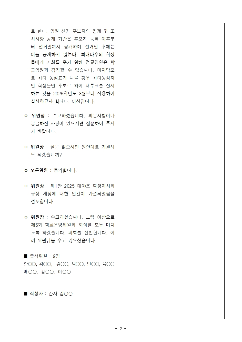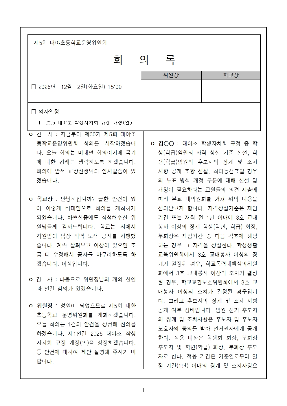 [ÀϹÝ] 2025Çг⵵ Á¦5ȸ Çб³¿î¿µÀ§¿øÈ¸ ȸÀÇ·Ï