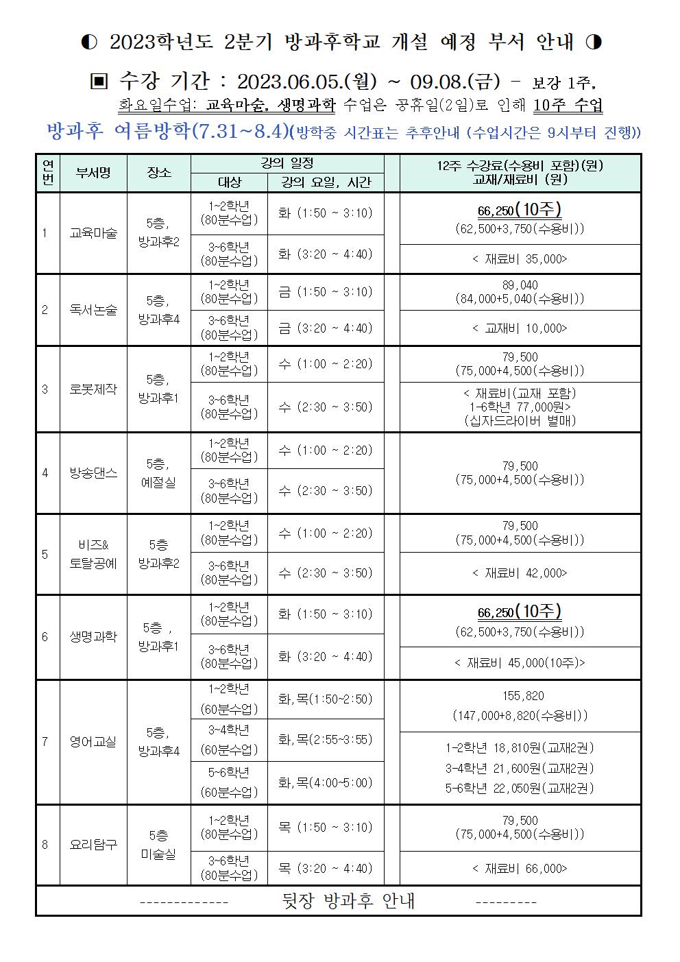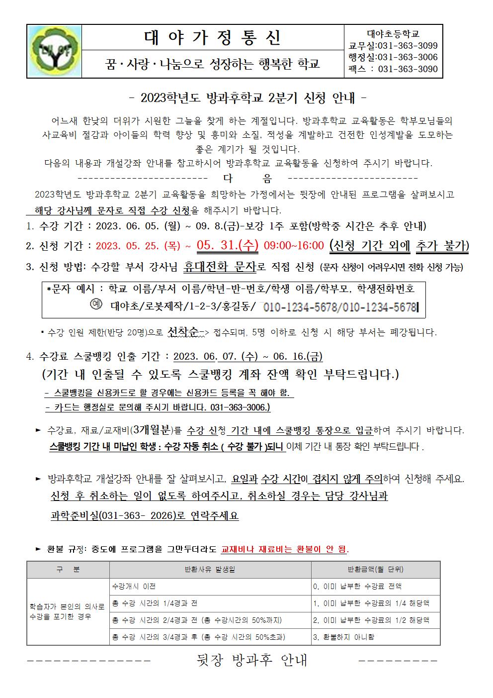 2023³â 2ºÐ±â ¹æ°úÈÄÇб³ ½Åû¾È³»