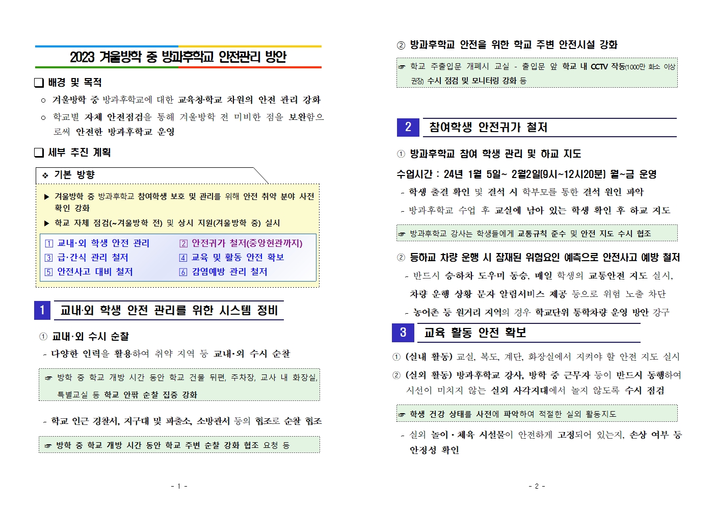 [ÀϹÝ] 2023 °Ü¿ï¹æÇÐ ¾ÈÀü°ü¸® °èȹÀÇ Ã·ºÎÀ̹ÌÁö 1