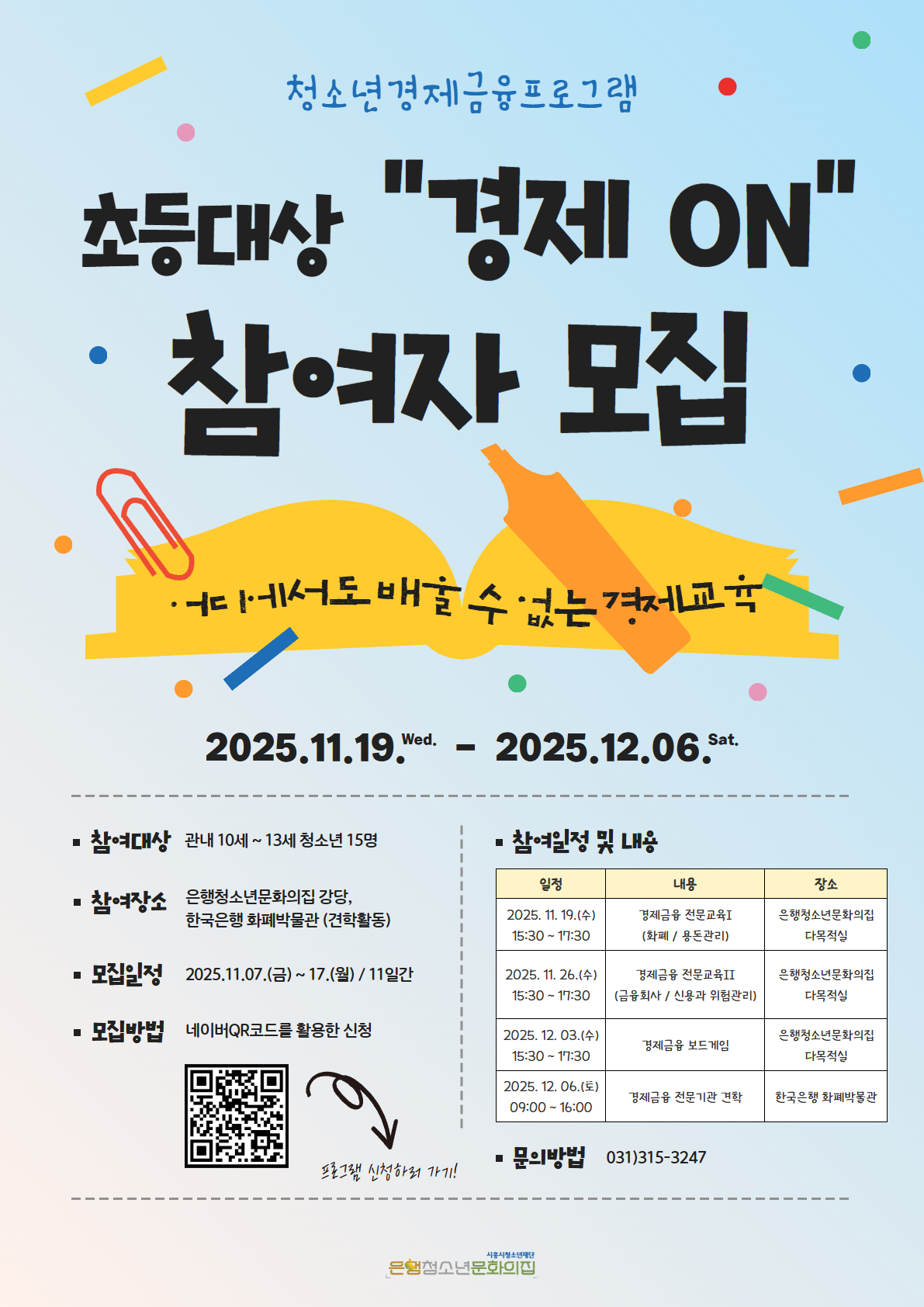 [ÀϹÝ] 2025³â û¼Ò³â°æÁ¦±ÝÀ¶ÇÁ·Î±×·¥ '°æÁ¦ON' ¸ðÁý