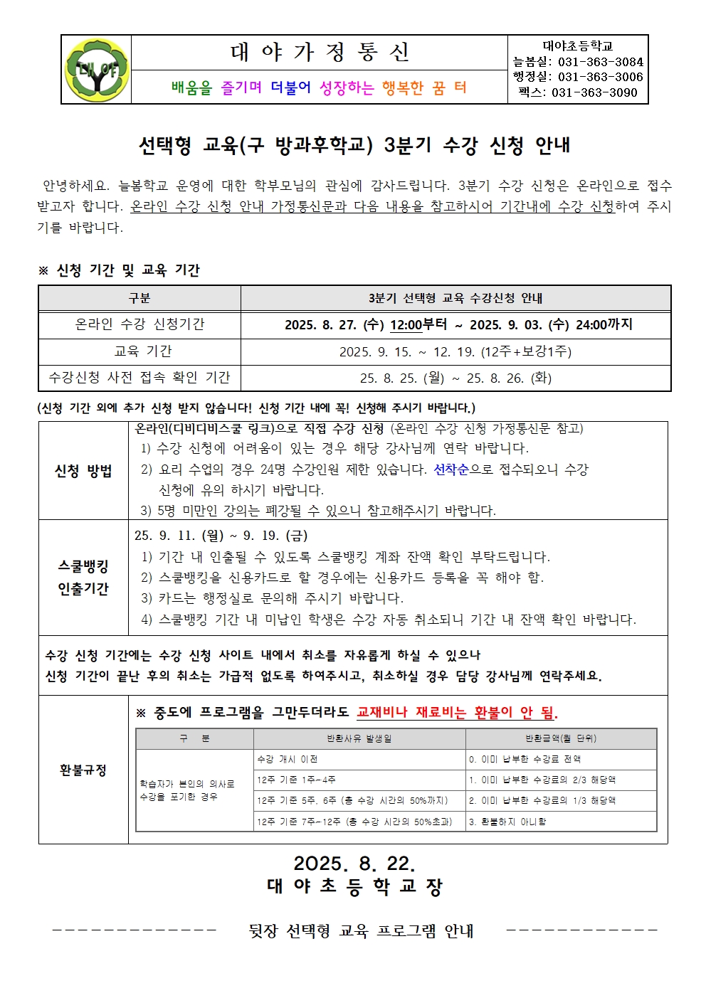 [ÀϹÝ] 2025Çг⵵ ¼±ÅÃÇü ±³À° ÇÁ·Î±×·¥ (¹æ°úÈÄ) 3ºÐ±â ¼ö° ½Åû ¾È³»
